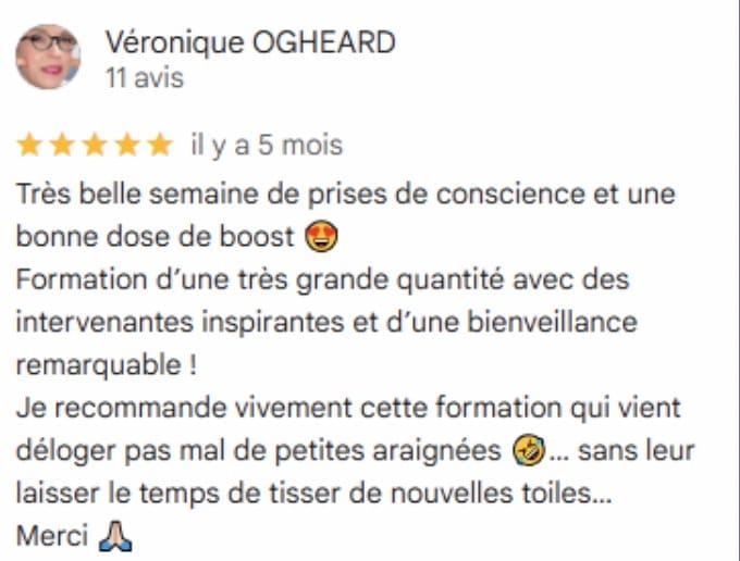 Parce qu'il s'agit d'un vrai mélange de seances de groupes mais aussi d'interactions individuelles pour que l'accompagnement s'adapte vraiment à tes problématiques.